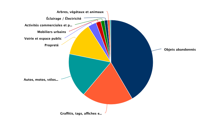 Le plus grand nombre d’anomalies signalées dans le quinzième arrondissement de Paris concerne les objets abandonnés. Et de très loin ! En cela le quinzième est un des champions sur Paris.