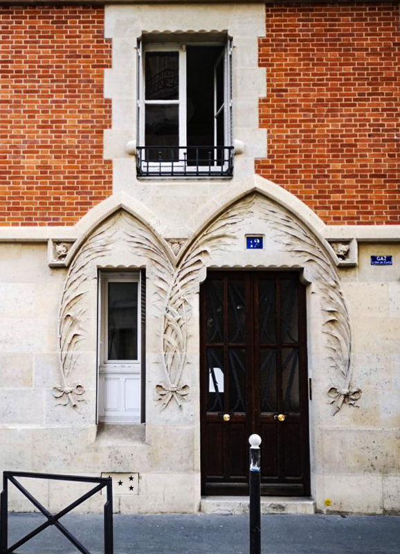 Le promeneur amateur d’architecture pourra s’attarder devant la façade d’une magnifique demeure de style Art Nouveau qui présente une rare double ogive asymétrique au n°12 de la rue Blomet.
