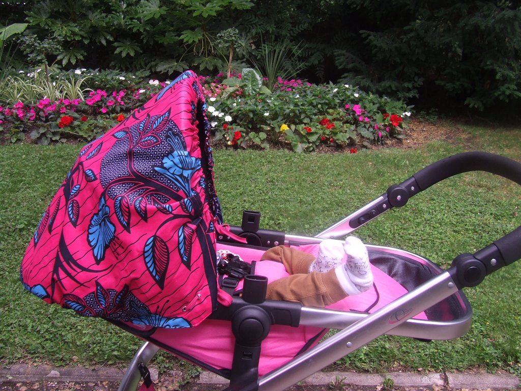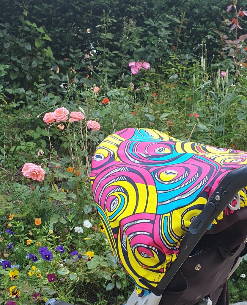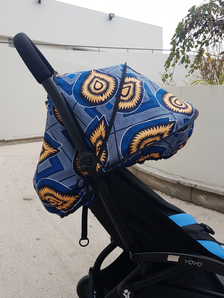 À l’origine l’idée de Julie était de créer des housses de poussettes. Pourquoi ? Parce qu’elle trouvait les poussettes traditionnelles un peu trop sages, pas assez colorées et surtout trop uniformisées. Ni une ni deux, Julie se saisit des tissus qui trainent chez elle, s’attaque à la couture et de cette idée nait la première housse pour poussette. Cette dernière se pare de magnifiques couleurs africaines.